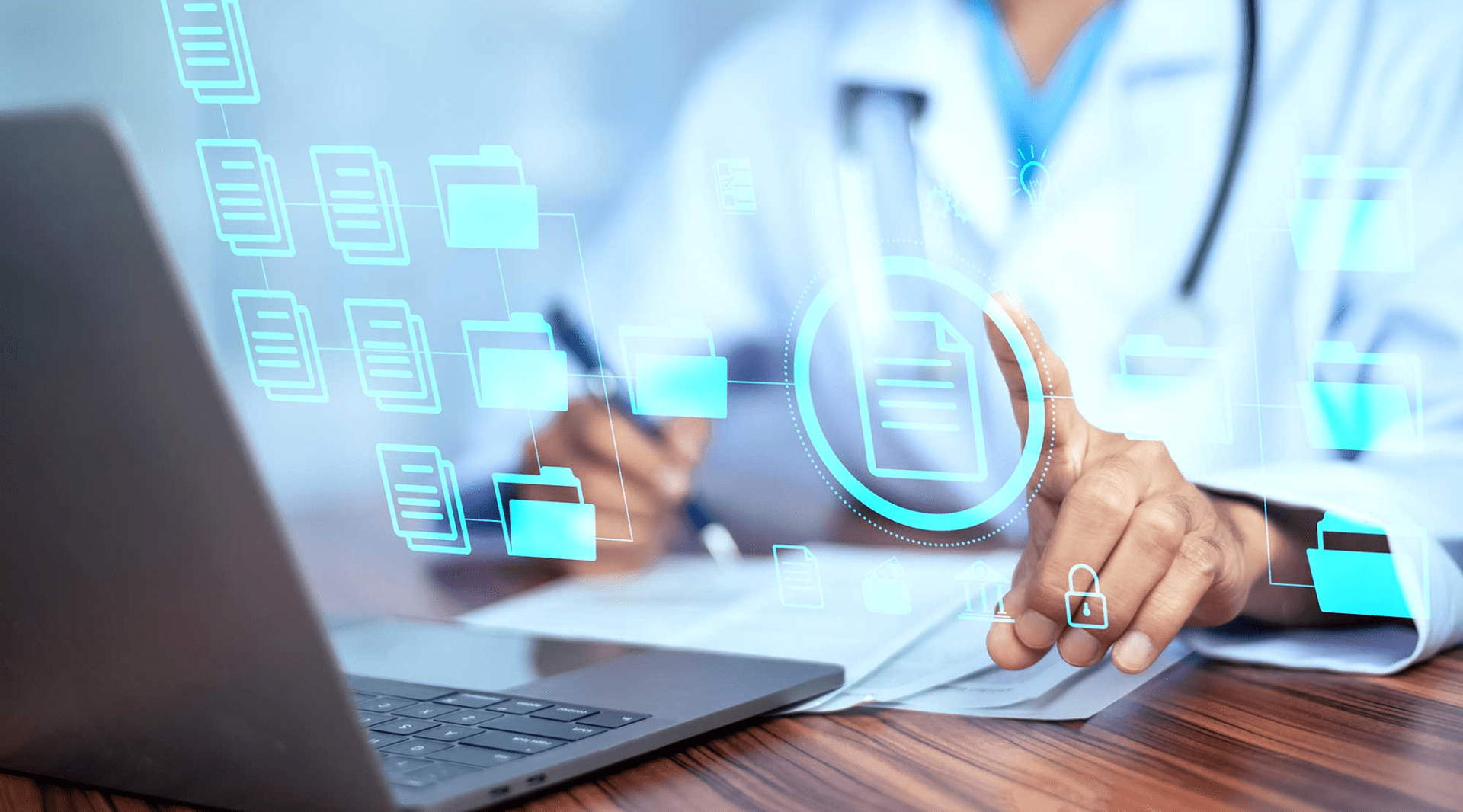 Sistema atento à LGPD: os dados dos pacientes são administrados com total segurança, por meio de criptografia avançada e políticas de segurança que barram acessos indevidos.